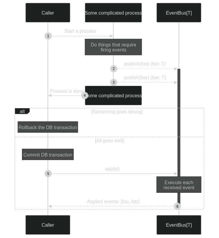 A very simple EventBus where each event is a CommitableFunction that is called on apply.